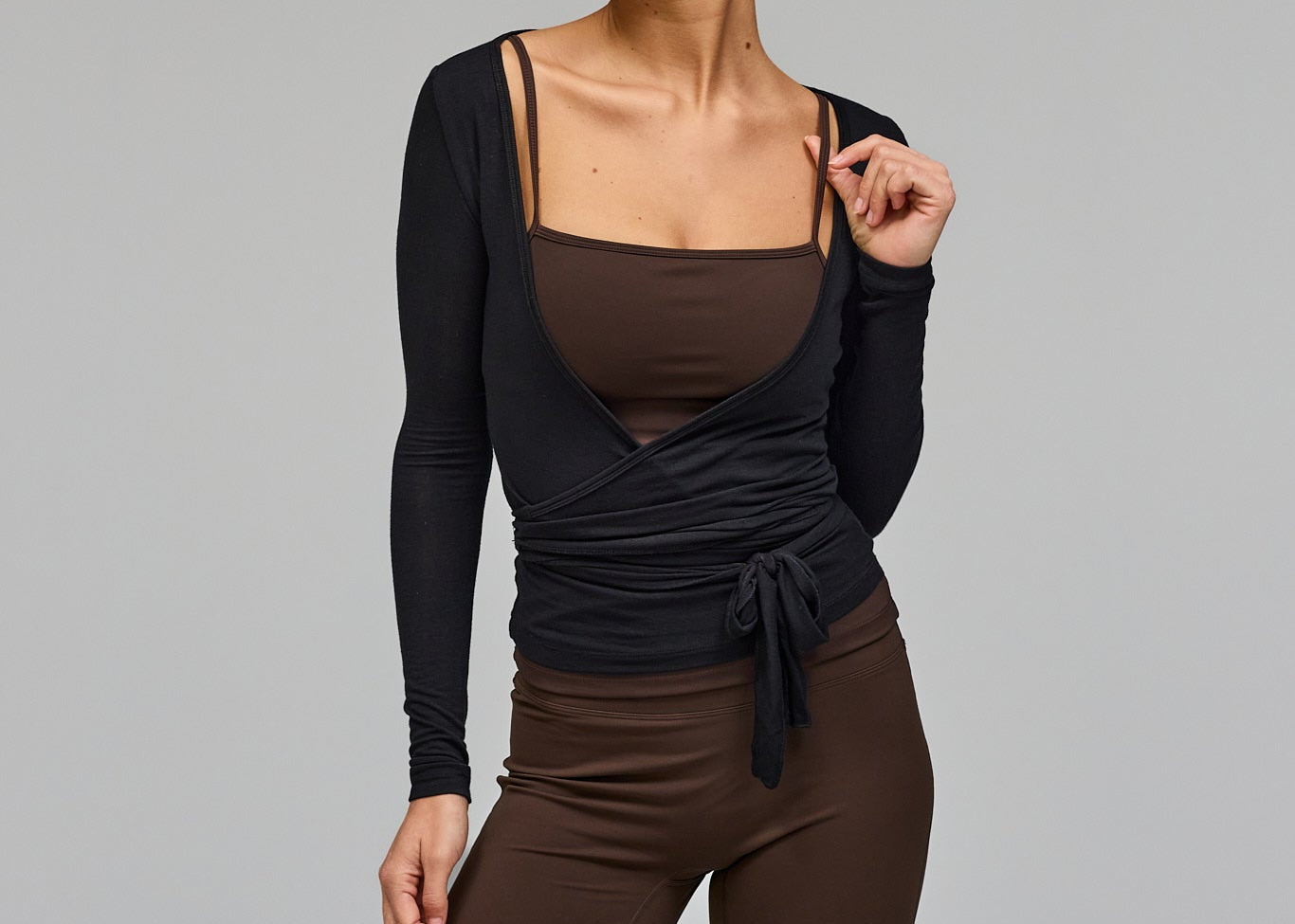Ballet Wrap Blouse - Pecan Brown